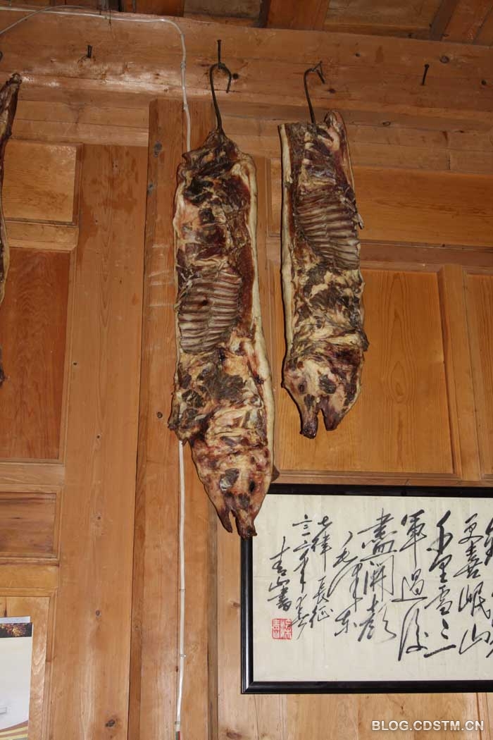 在村子里还跑着许多猪,叫藏香猪,也叫蕨麻猪,以地上的蕨麻为食。很多人的家里都高高挂着熏过的蕨麻猪肉。