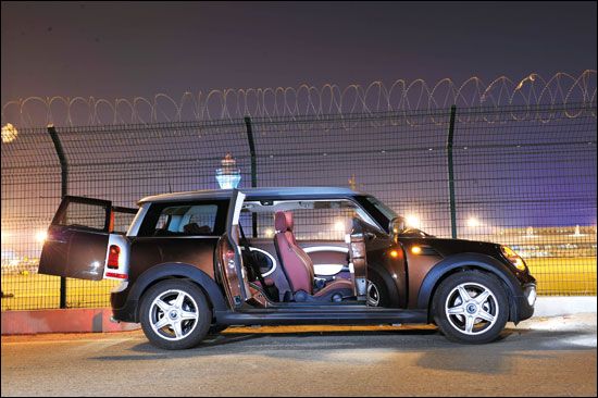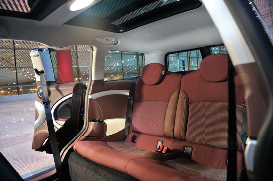 绝对的亮点来自于MINI Clubman创新的车门概念,让它成为一款非常特殊的五门车型,传统的前座双车门加上汽车右侧一个铰链装在后面的附加车门,以及背面的两扇对开门,车身右侧向行驶方向反方向打开的附加车门可以让乘客非常舒适和方便地进入后排,出于安全的考虑,侧面的后车门只有在前车门开启的时候才能打开,这也让车的外观看上去依然平滑自然,和谐地、几乎看不见地融入MINI Clubman的车身。