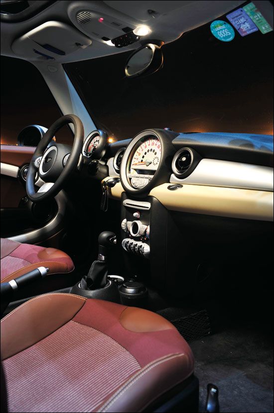 MINI Clubman的动人之处还有颜色,这就是为什么你总能感到惊奇的原因,超过40种的颜色搭配方案总会有一种符合你的口味。我很钟情面前这辆巧克力味道的坐驾,如果你觉得这没什么,那么个性化十足的内饰空间保证没有人不喜欢。MINI Clubman的座椅也采用了与外表一致的巧克力色,可以五色变化的装饰灯光、光彩夺目的大表盘,每一处的细节设计都是一件精致的艺术品,你会被活泼多变的内饰空间搞得晕头转向,但你一定会爱上这种感觉。