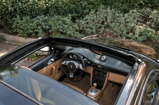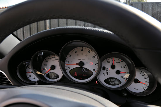 新911Targa4的配置比起Targa4S要逊色不少,3.6L的发动机,没有双离合,没有Normal与Sport模式的切换,标配的车型还使用了手动的6挡变速器。即便如此,它仍然是一个凶猛的家伙,不处于极限的状态下,你似乎感觉不出它与新911Targa4S的差别,它的对手似乎只有它同门的师兄。新911Targa4上水平对置的6缸发动机将0~100km/h加速时间延长到了5.0秒,这是否仍然是个令人生畏的数字,你应该很清楚。当我们坐到车上,被疯狂和紧张充斥着头脑时,没有几个人会察觉它们的差别,我们想到最多的则是握紧手中的方向,准备随时跺下脚下的制动踏板。