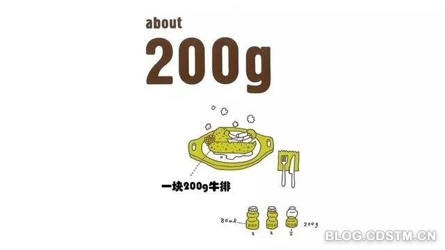 每天我们排便平均200g,怎么衡量,大约就是一份牛排的重量,或者用养乐多的瓶子来装,能装满2.5瓶。