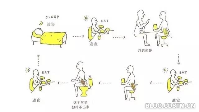 忙绿的时候没有充分时间来解决排泄问题。或经常错过正常的排便时间,出现便意只能憋着。排便间隔从原先的一天一次,到5~6天也不想,只好打支开塞露刺激一下才能排。