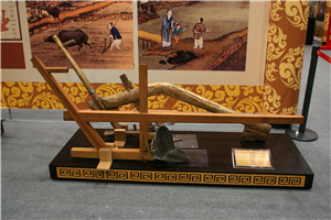 Cattle farming transferred the farming ways greatly. The development of farming tools is one of the important signs to measure agriculture production levels. The most initial plough is straight shaft plough, but its shortcoming is that return is awkward and soiling is uneasy. In Tang Dynasty (618-960), curve shaft plough was invented, which can swing in operation, more flexible, suitable for complex farming, easy to return and very light.