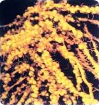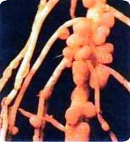 当我们观察大豆的根系时会发现大豆的根系上长了许多瘤子,难道是大豆生病了?其实,这些瘤子不但对大豆没有害处,反而对大豆生长有利呢。这些瘤子称为根瘤, 是由于根瘤菌寄生于大豆的根中所形成的。根瘤菌与大豆是共生的关系,根瘤菌能将空气中的氮转化为植物可吸收的氮,为豆科作物植株提供更多的氮素营养。同 时,大豆为根瘤菌提供良好的居住环境、碳源和能源以及其他必需营养。