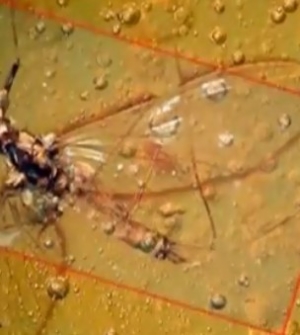 \n\t1600万年前,一只叫做跳虫的小型无翅昆虫,跳到了蜉蝣的背上,准备搭一程顺风车。然而,命运无常,一滴树液从头上砸下来并随即变硬,两只小虫就此葬身在琥珀之中。\n\n\t \n\n\t\n\n\t现在,我们能看到这两只古代昆虫的细节了。美国曼彻斯特大学的戴维·彭尼博士用CT扫描仪仔细检查了样品的内部结构,拍了3000张不同角度的X射线照片。这是动物把成年蜉蝣当成“交通工具”的第一例证据。跳虫用触角把自己紧紧地固定在蜉蝣身上。\n\n\t \n\n\t彭尼博士说,看上去一些轻微的迹象表明,在琥珀变硬的过程中,跳虫曾经试图逃离。现在,跳虫和蜉蝣遍及世界各地。长期以来,科学家一直想弄明白,跳虫是怎么从大陆跑到遥远的、与世隔绝的小岛上去的。\n\n\t \n\n\t\n\n\t1600万年前的一滴树液和一段突然改变的命运似乎为我们解答了这个问题。
