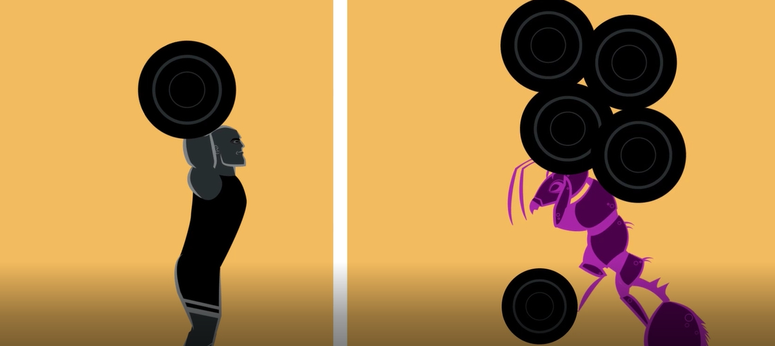 蚂蚁能承受自身体重十二倍的重量,而人类只能承受两倍。