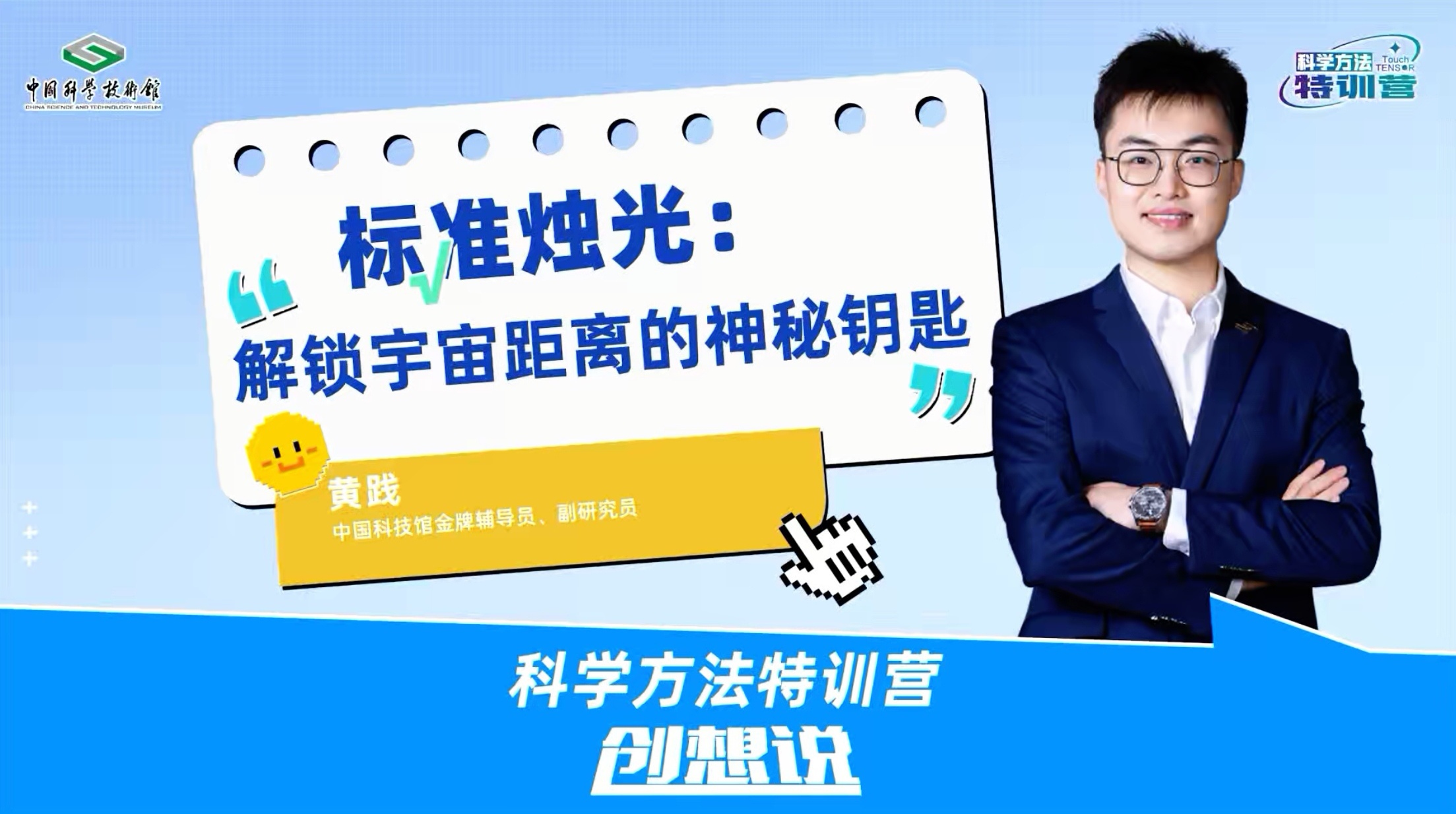 中国科技馆《科学方法特训营创想说》第二期——星空探秘:天文观测的多维对话 科普微课——中国科技馆金牌辅导员、副研究员黄践:“标准烛光:解锁宇宙距离的神秘钥匙”。