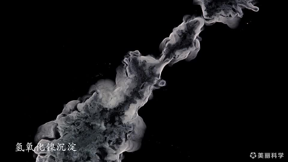 溶液中,阴离子与阳离子结合形成不溶于水的化合物的过程,称为沉淀反应。该影片从艺术的视角探索了各种沉淀物的色彩与形态。为了形成有趣的形状和纹理,有时会在反应中同时生成多种沉淀物。(摄影:朱文婷)