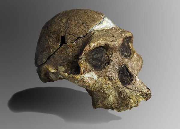 The original skull (without upper teeth and mandible) of a2.1-million-year-old Australopithecus africanus specimen so-called Mrs. Ples,discovered in South Africa. (José Braga; Didier Descouens via WikimediaCommons)