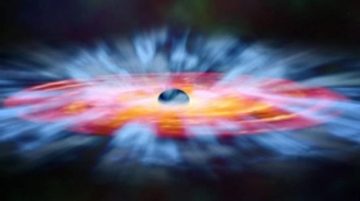 在类星体中央的黑洞贪婪地吞噬着四周的气体和尘埃,“而类星体的热量和辐射来自于那些被黑洞吞噬的物质,被黑洞吞噬的物质塑造出类星体的碟型的形状,就像排水口的漩涡一样。而这个闪亮的吸积盘的亮度让它所在的星系相型见拙。