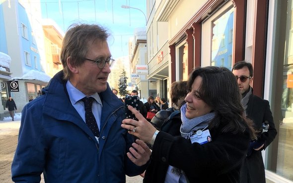 迪克里斯蒂娜:“本·费林加和我现在就在达沃斯论坛的现场,我们正准备去参加下一场会议。刚刚我和费林加教授交流了现阶段他最感兴趣的研究课题。”