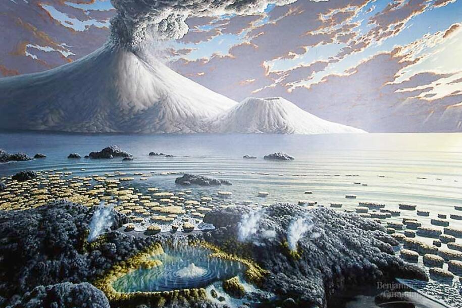 具体来说,在古老地球的火山附近有着大量的热泉和间歇泉形成的水池,这类水池干湿交替、不断循环,它的热量可以催化各种化学反应,干旱期可供简单分子聚合成为复杂分子,湿润期则可以让这些聚合物四处流动,在这之后的干旱期又能把聚合物困于细小的孔隙中,让它们相互作用,甚至在脂肪酸构成的囊泡中进一步浓缩——而脂肪酸囊泡正是细胞膜的原型。