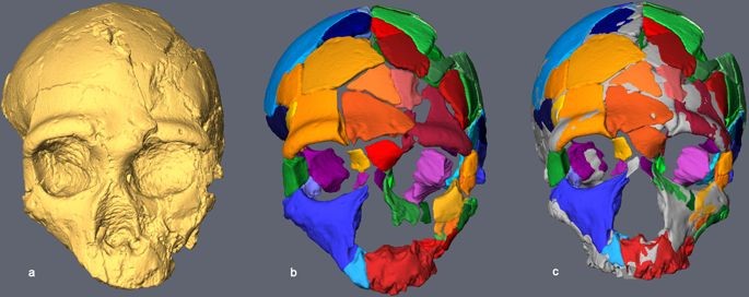 研究人员对化石做了计算机断层扫描,创立了两个颅骨的三维虚拟重构。