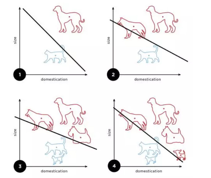 随着训练数据的增加,算法会更新其选择的直线。(图片来源:University of Bath)