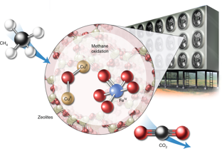 为此,研究人员分析了大量对于沸石的研究。沸石是一种多孔材料,它的孔隙中可以容纳金属催化剂。通常,人们通过沸石和其他材料将甲烷转化为甲醇,这是工业上制造特殊化工原料的过程。研究人员移除其中繁琐的工艺,让甲烷直接转化为二氧化碳。甲烷的能量比二氧化碳要高,根据化学反应原理,这个转化几乎不需要其它外部条件,反应就能够自动进行。在这个过程中,反应对于沸石寿命的影响较小,可以延长其使用的期限。最终二氧化碳直接排放,不必另外再进行捕集工作。于是整个过程变得高效便捷且成本低廉。