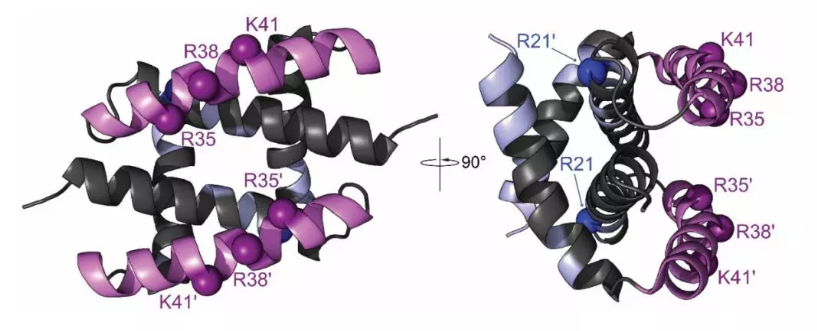 1918年西班牙流感病毒株NS1蛋白的RNA结合区域中与RIG-I结合的部分(图片来源:UAB)