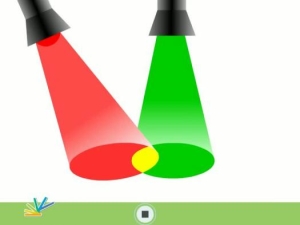以丰富的形式,实验介绍了什么是三原色,以及三原色之间两两混合产生的新的光颜色。最后介绍了三原色全部混合在一起成了白色。