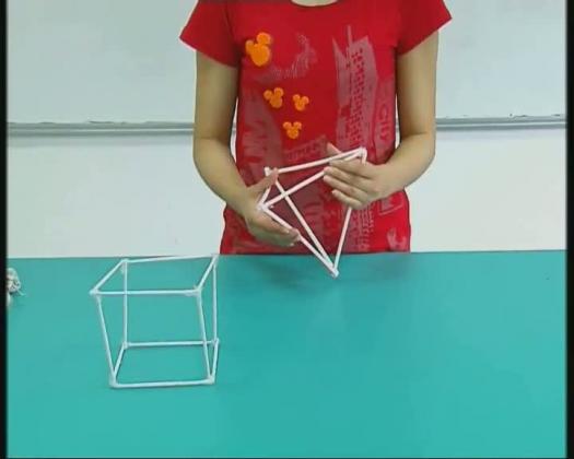 以直接明了的实际操作的形式,通过分别挤压正方体支架和三角形支架,使我们明白三角形的稳定性较好,正方体支架的稳定性较差。