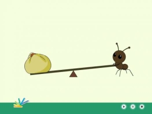 以生动的动画形式,贴切的小例子,使我们看到当小蚂蚁把支点的位置移到杠杆的1\/3处时(向重物的方向移动),小蚂蚁省力了。因此我们明白了使杠杆的动力臂变长,就会省力。