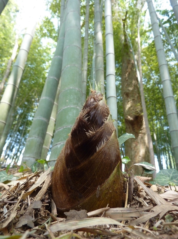小布在竹笋旁蹲下身子,仿佛破案了一般喊道:“我知道了!竹笋是从竹子的根上长出来的!”