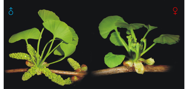 银杏雄花(左)和雌花(右)