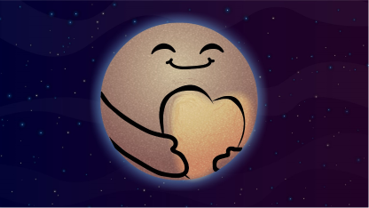 “这是冥王星表面一个显著的特征,是一个横跨大约1,590公里的巨大、浅色区域,其轮廓犹如一颗桃心。科学家相信暗斑下可能有一片深度达100公里的沙冰状海洋,而且水量几乎与地球海洋相等。”妈妈解释道。