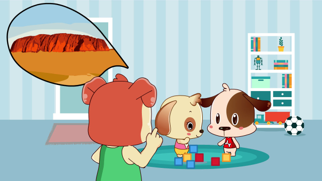 “在澳大利亚的北领地,境内是大面积的红色沙质地带,一眼望去,荒漠无垠。在这片土地上有一块大石头,当地原住民称其为乌鲁鲁(Uluru),1873年被南澳洲测量员发现,命名为艾尔斯岩,是目前世界上最大的单体巨石。”妈妈的故事开篇了,“单体就是一整体的意思,也就是说它是一整块巨石。”
