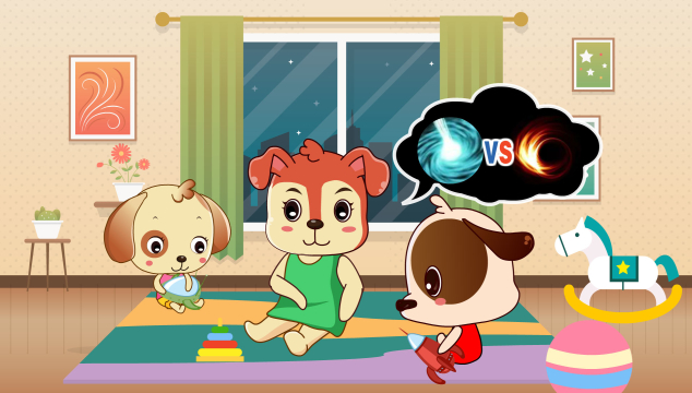 “开开,心心,还记得昨天爸爸讲了个宇宙中的洞吗?”妈妈坐到两个小家伙儿身旁问道。