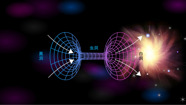 科学家们假想,黑洞和白洞之间由虫洞相连,而白洞的另一端可能是另外一个时空,透过虫洞可以做瞬时的空间转移或时间旅行。