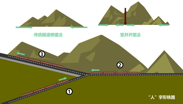 “是呀!以前在大山之间修隧道,都是从山的两头同时往中间开凿的。而竖井开凿法是先从山顶往下打一口竖井,再分别向两头开凿,外面两端也同时施工。这样就相当于有四个队伍在共同施工,可以加快施工速度。”妈妈解释道。