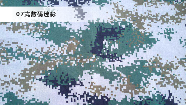现代军用迷彩首次出现是在第一次世界大战中,以应对飞机的高空侦察。如今迷彩服是现代军用必不可少的装备之一。我国第一代迷彩服叫做87式迷彩服;07式迷彩服为第二代迷彩服,由计算机设计,采用数码点阵的方式,也称作数码迷彩。这种马赛克的作用就是为了丰富迷彩服上的颜色。由于颜色交错排列,在一定距离后就会产生混色效应,也就是两个颜色之间会出现第三个颜色,这样在一定距离上更能融入周围的环境,起到高度隐藏的作用。迷彩服最初依据不同地域采取不同配色,已应对不同环境所需,如今也可用于军种划分。
