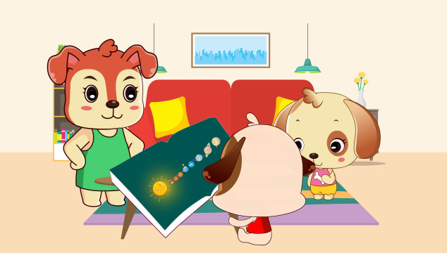 “水星、火星、金星、地球、海王星、天王星、土星、木星。”开开指着画上的星球念叨,“还真是按照体积排序的。”