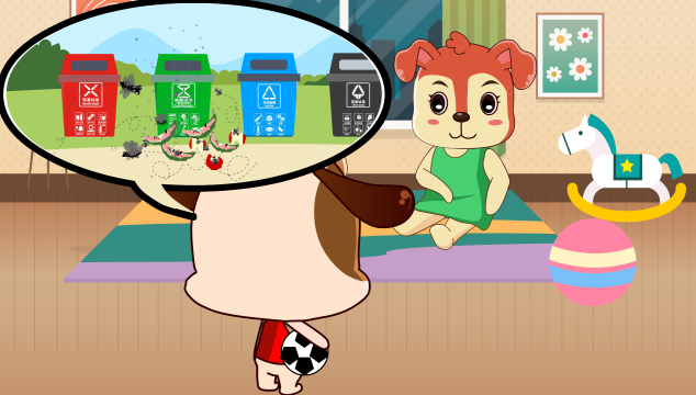 “哎,也不知道谁把吃剩下的西瓜扔在了垃圾桶外面,现在好多苍蝇在那里飞呢!”踢球回来的开开不满道。