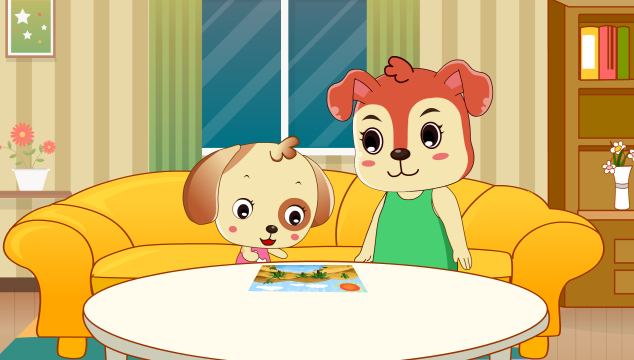 “什么呀!这黄色的是沙漠,这是棕榈树,这里是绿洲!”心心用手指着画上相应位置介绍的。