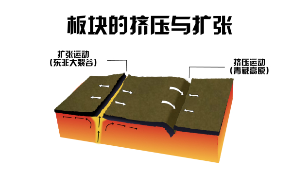 “没错。板块的挤压运动可以形成高山,比如青藏高原就是板块挤压运动形成的。但是板块同样存在扩张运动。岩石圈因水平向外的力拉伸会变得越来越薄,就像我们用外力撕纸一样,岩石圈会像纸一样,最终被撕裂,大西洋就是这样形成的。”开开解释道。