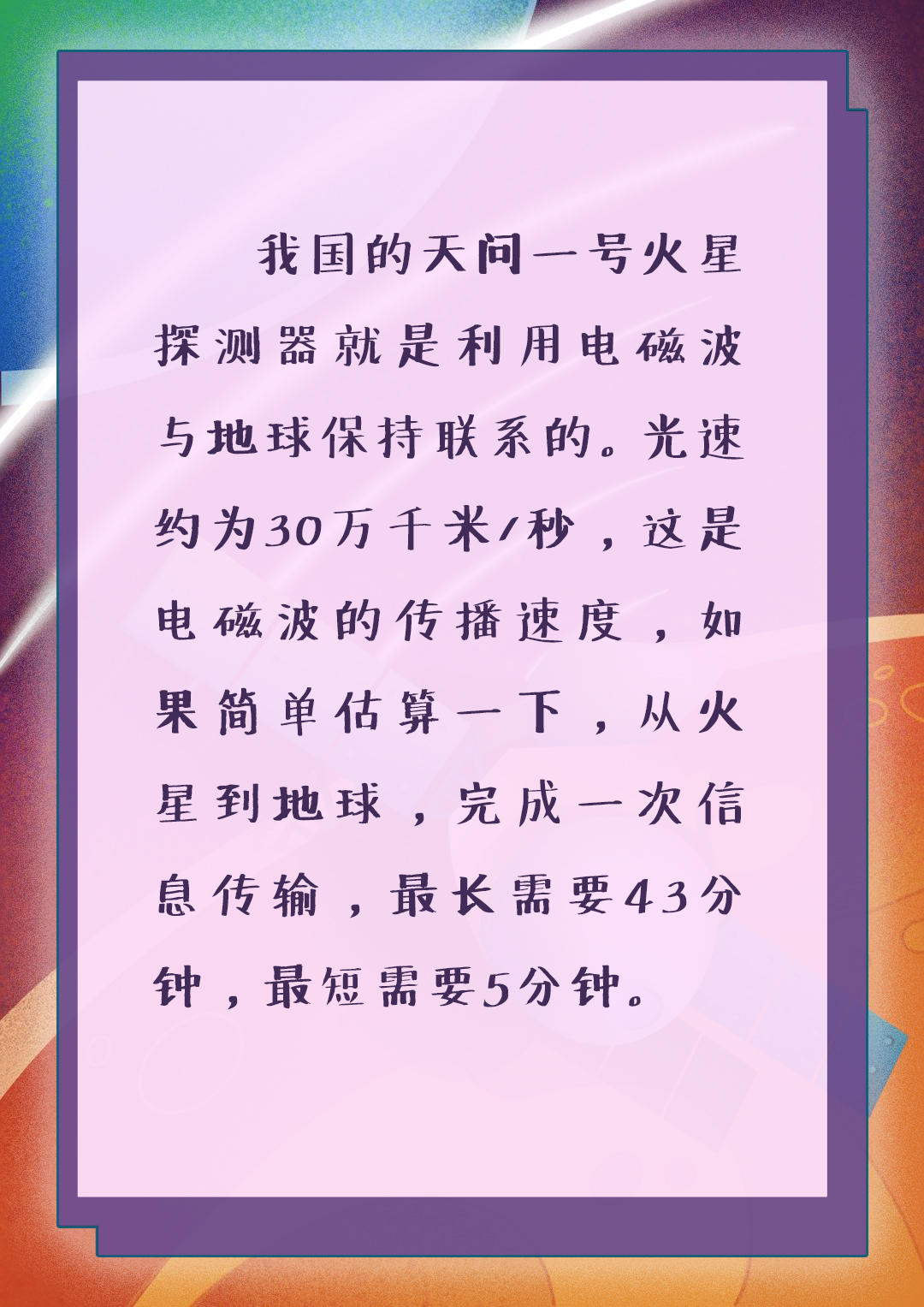 天问一号环绕器和祝融号火星车安全度过首次日凌,恢复科学探测工作。环绕器将于11月初进入遥感使命轨道,开展火星全球遥感探测。那么你知道天问一号发射的信号要多久才能到达地球吗?快来一起了解下!