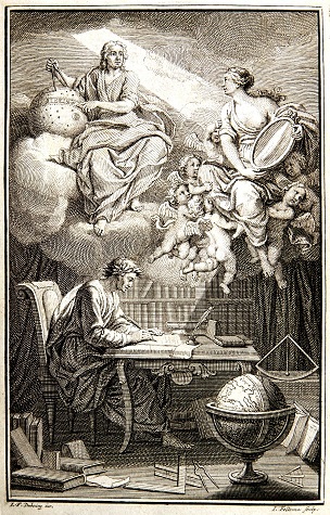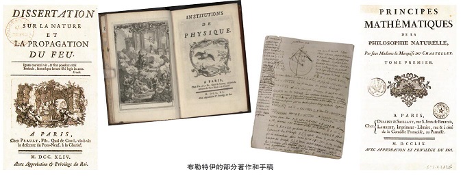 当时很多法国人不了解牛顿的理论,这让伏尔泰感到非常遗憾。他和布勒特伊合作撰写《牛顿哲学原理》,把牛顿的理论著作用简洁的语言深入浅出地介绍给读者。数学在牛顿的理论中起到了重要的作用,这是伏尔泰的弱项,而恰恰是布勒特伊擅长的,两人珠联璧合,配合默契。1738年,这本书出版,封面上只有伏尔泰的名字,但他在序言中介绍了布勒特伊的贡献;在卷首插画中,布勒特伊化身为“真理女神”,用镜子将牛顿的思想之光折射到伏尔泰握着笔的手上。