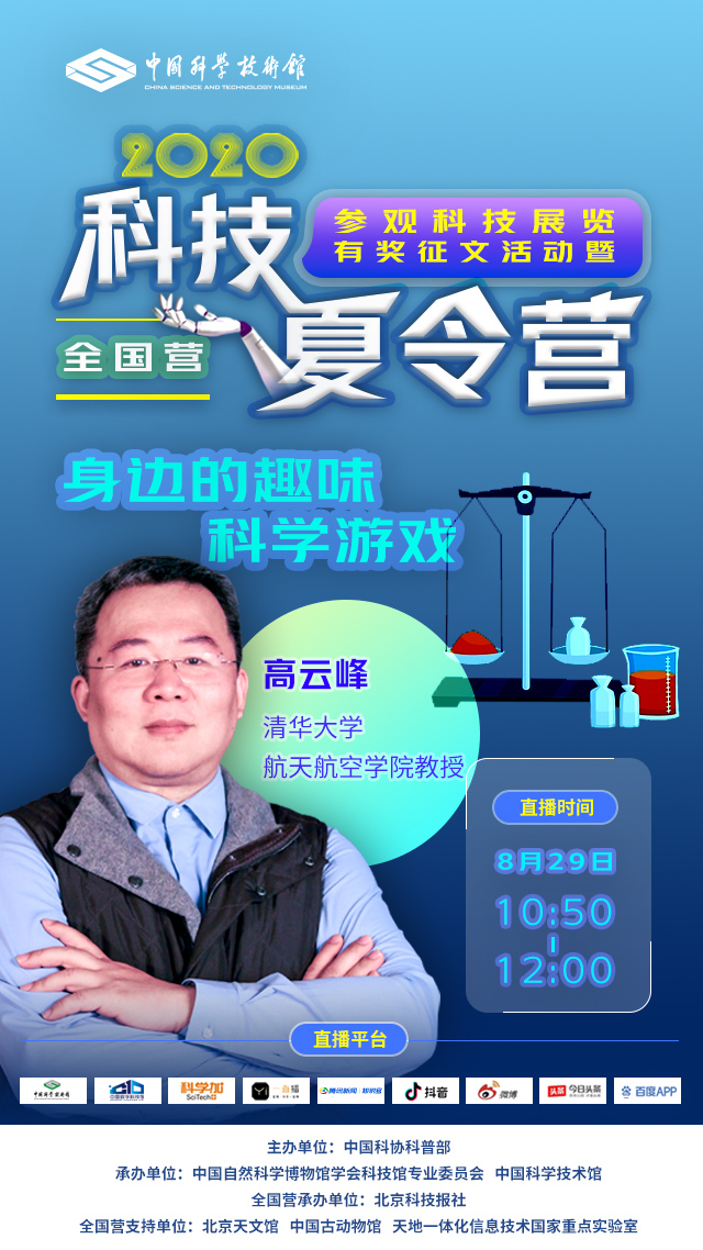嘉宾简介:清华大学航天航空学院教授,博士,硕士生导师,力学专家,中国力学会理事,青少年科普教育专家。与中央电视台等多个科普栏目长期合作,策划设计了数百个力学科普实验和活动,观众累计超过4亿人次;策划多届中国科学院力学所的科普开放日、全国中学生趣味力学竞赛、海峡两岸中学生力学夏令营等活动,多次担任全国科技竞赛评委、命题人,具有丰富的力学科普经验。