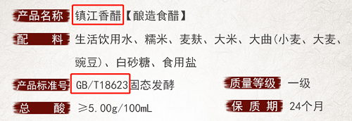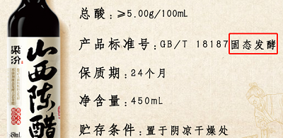 此外,该标准要求产品名称应标明“酿造食醋”,还应标明产品类别和总酸的含量。一般参照该标准执行的食醋,包装上还会添加“固态发酵”或“液态发酵”字样。这些都是我们选购时在包装上可以看到的信息。
