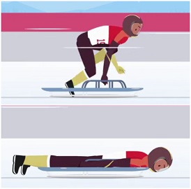 雪橇起源于瑞士及北欧地区,是一种运动员仰面躺在雪橇橇体上,通过身体各部位协调用力来操控雪橇滑行的运动。起步时,运动员坐在雪橇上,抓住赛道出发处两侧的把手,通过前后摆动加力出发;之后再通过手指部分带有钉子的手套,在冰面上耙冰进行加速;找到最佳速度后,再平躺在雪橇上滑行,通过身体各部位协调用力来调整和改变方向;到终点后,运动员通过调整姿势来减速。