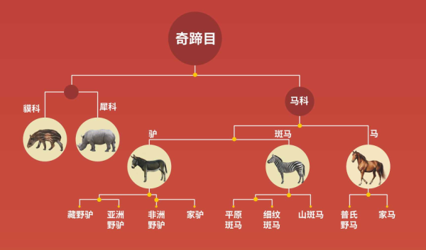 始祖马不仅是马的祖先,也是犀牛、貘(mò)的祖先。我们通常所说的马,在生物学上属于奇(jī)蹄目-马科-马属。马科动物不止有马,还包括三种斑马和几种驴。